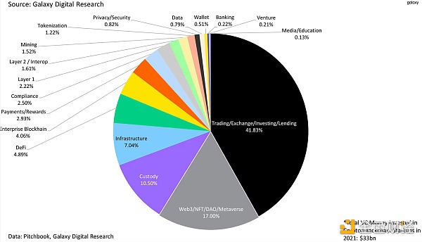 2021年風(fēng)險投資資金在Crypto/Blockchain領(lǐng)域的投資情況(按類別)
