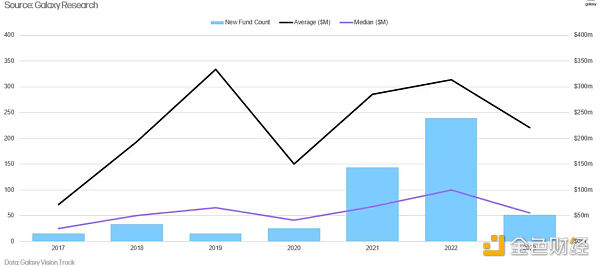 2023年新加密風(fēng)險投資基金成立數(shù)量是2020年以來最少的,平均基金規(guī)模下降了30%,中位數(shù)基金規(guī)模下降了45%。