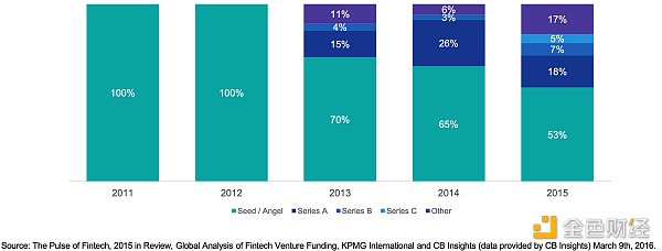 2015年,盡管Bitcoin價格較2013年的峰值有所回落,但Blockchain技術(shù)仍然吸引了越來越多的資本和創(chuàng)業(yè)者的興趣。Bitcoin初創(chuàng)企業(yè)的總投資額達到3.8億美元。