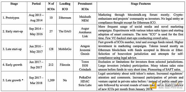 2013年至2018年*I*C*O的發(fā)展階段(Boreiko,D.和Sahdev,N.“*I*C*O還是不*I*C*O——首次Tokens發(fā)行和Tokens銷售的實證分析。”)