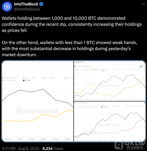 數據表明,Bitcoin長期持有者在過去30天內增持了約40.4萬枚Bitcoin,相當于230億美元。這一趨勢與IntTheBlock分析師的觀點一致,后者指出巨鯨利用價格下跌的機會進行買入,而小型投資者則因為恐慌而紛紛拋售。