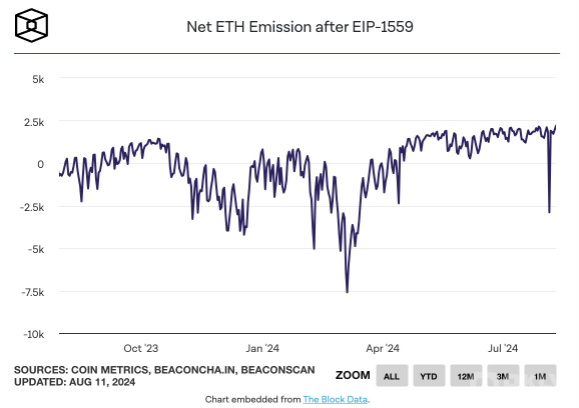 據(jù)The Block的統(tǒng)計,盡管有210個ETH被銷毀,但凈發(fā)行量卻超過了2,000個ETH。這一現(xiàn)象引發(fā)了對Ethereum網(wǎng)絡(luò)健康狀況的廣泛關(guān)注。