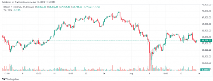近期,美國勞工統(tǒng)計局(BLS)發(fā)布的消費(fèi)者價格指數(shù)(CPI)數(shù)據(jù)顯示,7月份消費(fèi)者價格同比上漲2.9%,是自2021年以來的最低增速。這一消息公布后,Bitcoin價格短暫下跌,跌破60,000美元,至58,751美元。
