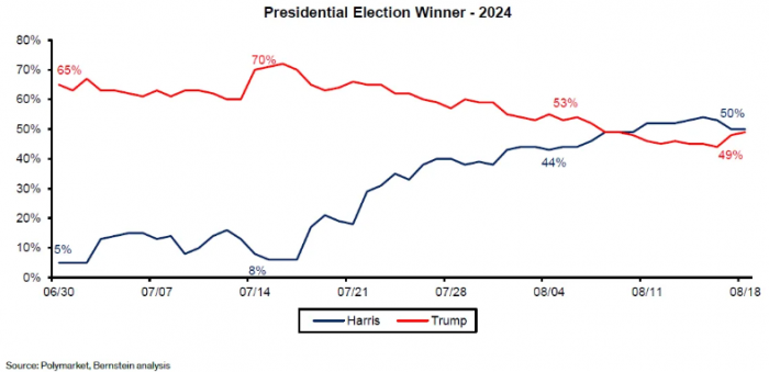 此言論是在crypto市場保持在窄幅波動范圍內(nèi)的背景下提出的,伯恩斯坦認(rèn)為,這主要是由于美國大選帶來的不確定性所致。