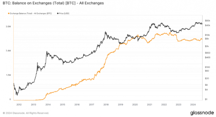 Bitcoin價格波動,2024年交易所余額或重回300萬