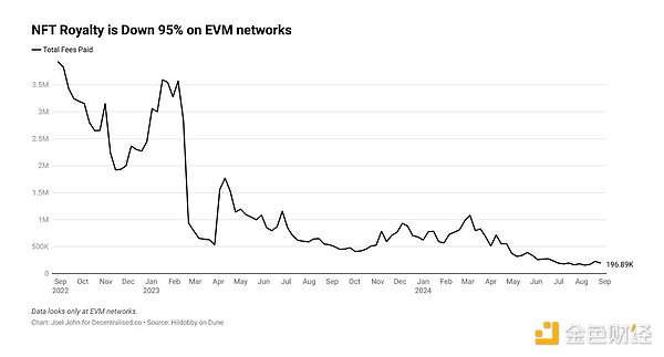 這種模型很有趣,因為它為創(chuàng)作者提供了繼續(xù)從作品中獲得版稅的方式,并建立有意義的社區(qū)。相比之下,2024年第二季度的meme幣季節(jié)則由名人所推動,他們常常談?wù)撟约旱腡okens,而這些Tokens卻在幾周內(nèi)暴跌了90%。