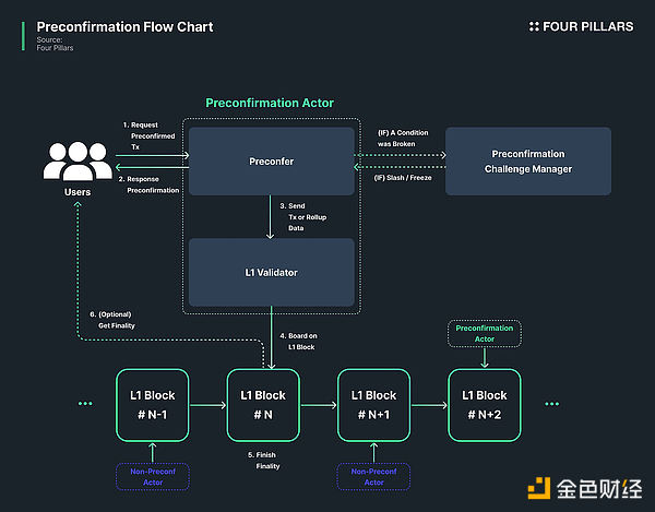 預(yù)確認者對交易進行審核并發(fā)送預(yù)確認回執(zhí),向用戶承諾該交易將被包含在L1區(qū)塊中,從而為用戶提供初步的最終確認保障。