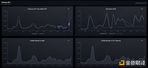 Ethena其底層邏輯是BTC突破新高以后,做多情緒濃烈,資金費率的提升拉高了USDe的質押收益率,并帶來USDe的增長。盡管較前幾日有所下降,12月6日Ethena官網顯示的APY有40%左右。