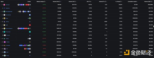 Dex交易量排行榜,數據源于DeFiLlama