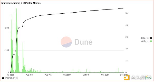 據Dune數據顯示,MakeNow.Meme創建一周僅后就逐漸消亡,走向無人問津的結局。這或許印證了Memecoin的核心敘事和主要邏輯還是對于公平的追求。