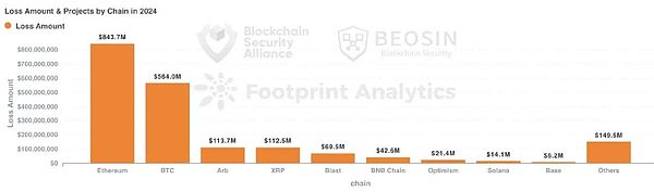 Bitcoin網(wǎng)絡(luò)損失排在第2位,單次安全事件損失達到了2.38億美元。第三位的是Arbitrum,總損失約為1.14億美元。