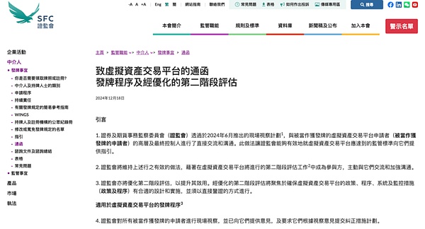 同在 2024年12月18日,香港證監會發布《致虛擬資產交易平臺的通函-發牌程序及經優化的第二階段評估》,為仍在排隊等待牌照申請的11家機構提供了清晰的路線圖指引;2025年初,證監會將為所有持牌平臺成立一個正式的咨詢小組,各持牌機構都將委派其高層人員擔任代表,便于香港證監會充分聽取和考慮機構觀點,以及有系統地優先處理建基于投資者保障的發展事項。新的一年,必將有更多優秀團隊加入虛擬資產交易平臺的隊伍,推動市場繼續壯大。