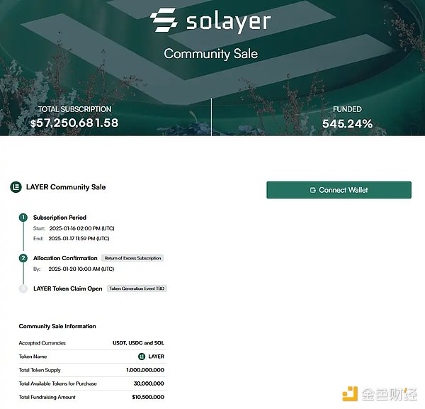 1月18日,幣安前高管創建的IC0平臺Buidlpad上首個公售項目Solayer(LAYER)結束發售,最終募集的資金高達5730萬美元,比原計劃的1050萬美元多出545.24%。