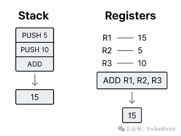 堆棧式vs寄存器式計算模型對比圖Ethereum的選擇:從概念出發,構想下一代ZK原生虛擬機