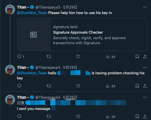 幸運的是,這位用戶足夠警惕,并未按對方引導輸入私鑰,而是主動聯系了慢霧安全團隊核實情況,最終確認這是一場*騙*局,成功避免了資產損失。