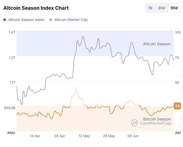 BTC主導指數:截至6月31日,當前BTC主導指數為64%,持續(xù)攀升。