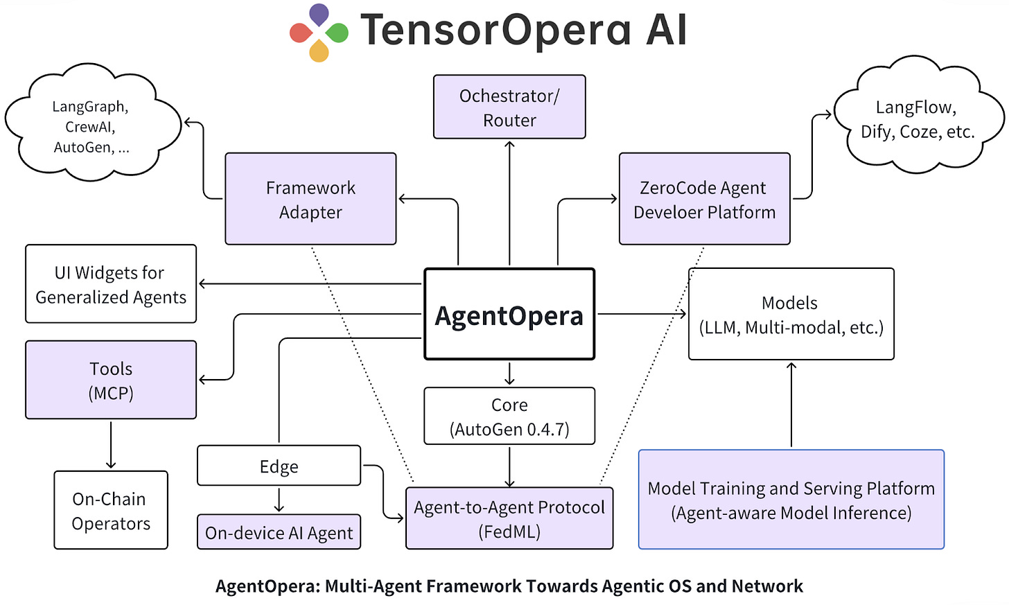 ChainOperaAI與多方合作,強(qiáng)化平臺(tái)的可用性與安全性,并注重Web3場(chǎng)景融合:通過(guò) AITerminalApp 聯(lián)合錢包、算法與聚合平臺(tái)實(shí)現(xiàn)智能服務(wù)推薦;在 AgentPlatform 引入多元框架與零代碼工具,降低開發(fā)門檻;依托 TensorOperaAI 進(jìn)行模型訓(xùn)練與推理;并與 FedML 建立獨(dú)家合作,支持跨機(jī)構(gòu)、跨設(shè)備的隱私保護(hù)訓(xùn)練。整體上,形成兼顧 企業(yè)級(jí)應(yīng)用 與 Web3用戶體驗(yàn) 的開放生態(tài)體系。