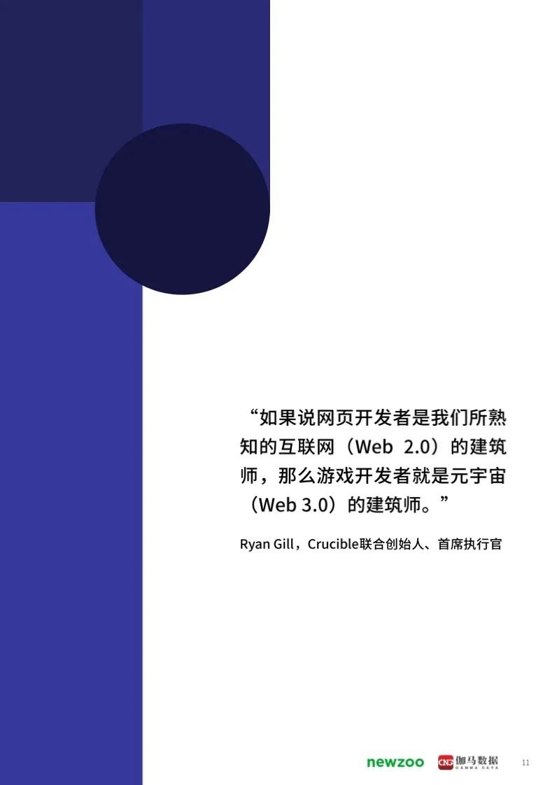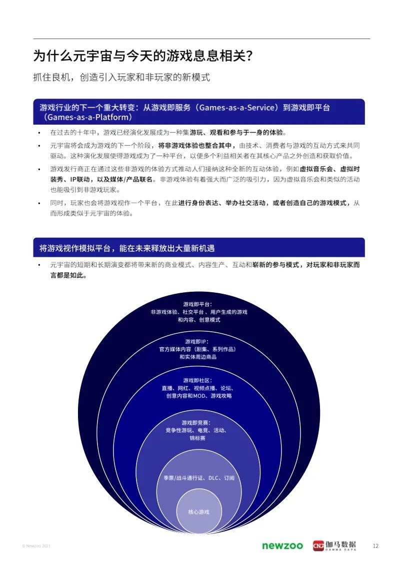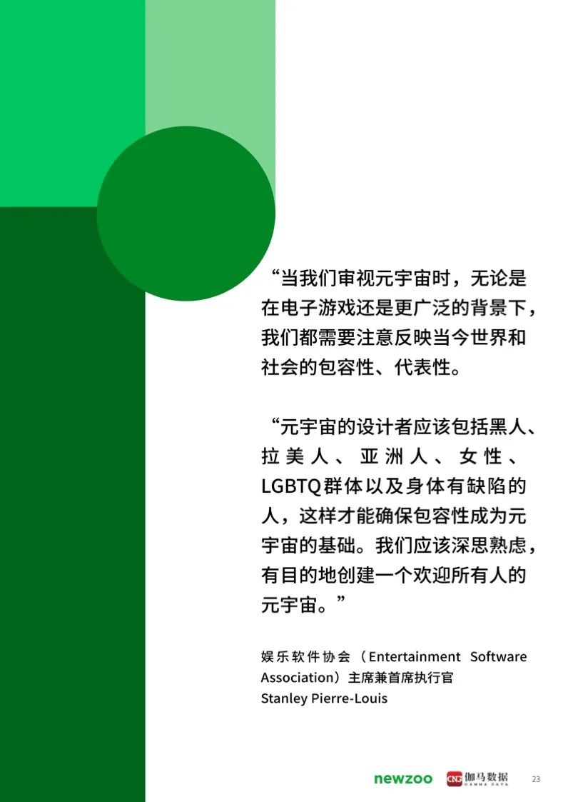 本次報告由Newzoo聯合伽馬數據聯合發布。報告對于全球以及cn市場的元宇宙發展進行了深入的分析。話題包括諸如元宇宙的歷史于演變、游戲生態系統的機遇和影響、消費者洞察、以及cn元宇宙發展狀況等特別主題。