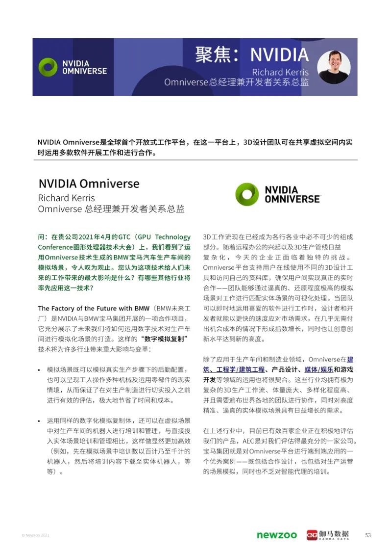 這份報告還采訪了在實現元宇宙的道路上扮演著不同角色的關鍵企業,包括了The Sandbox、英偉達、Unity、世紀華通、元境等,并且在cn和全球做了大量大用戶調研。