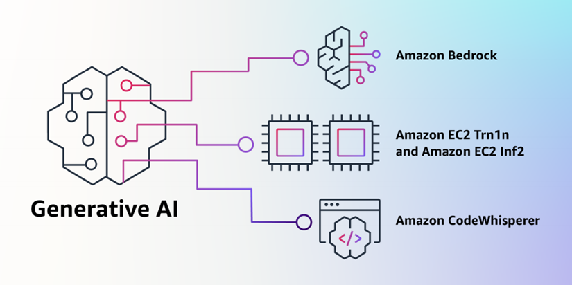 生成式 AI 技術(shù)支持的解決方案:由于內(nèi)置生成式人工智能,如 Amazon CodeWhisperer(一種人工智能編碼伴侶)等服務(wù)可幫助企業(yè)提高效率。此外,可使用亞馬遜云科技樣例解決在方案部署中常見的生成式人工智能案例,如調(diào)用歸納總結(jié)與問答。此類解決方案將亞馬遜云科技人工智能服務(wù)與領(lǐng)先的基礎(chǔ)模型相結(jié)合。