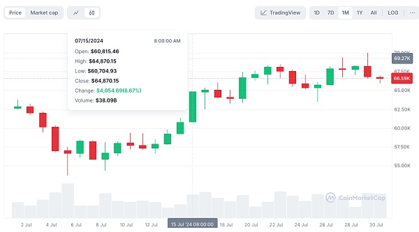1.7月15日-7月28日,BTC強(qiáng)勢反彈,最高上漲至6.9萬美元(7月27日),收漲12.56%。ETH最高上漲至3543美元(7月22日),7月23日Ethereum現(xiàn)貨ETF正式獲批上市交易后,ETH經(jīng)歷短暫上漲,然后開始下跌,收于3269美元,收漲2.44%。預(yù)期灰度EthereumETF流出壓力相比當(dāng)時(shí)BitcoinETF要小,而整體EthereumETF的規(guī)模和增長速度將不及Bitcoin現(xiàn)貨ETF,以至于Ethereum漲幅也會(huì)小于當(dāng)時(shí)BTC的表現(xiàn)。BTC現(xiàn)貨ETF上市后,BTC價(jià)格2個(gè)月后突破歷史新高,漲幅達(dá)到62%。